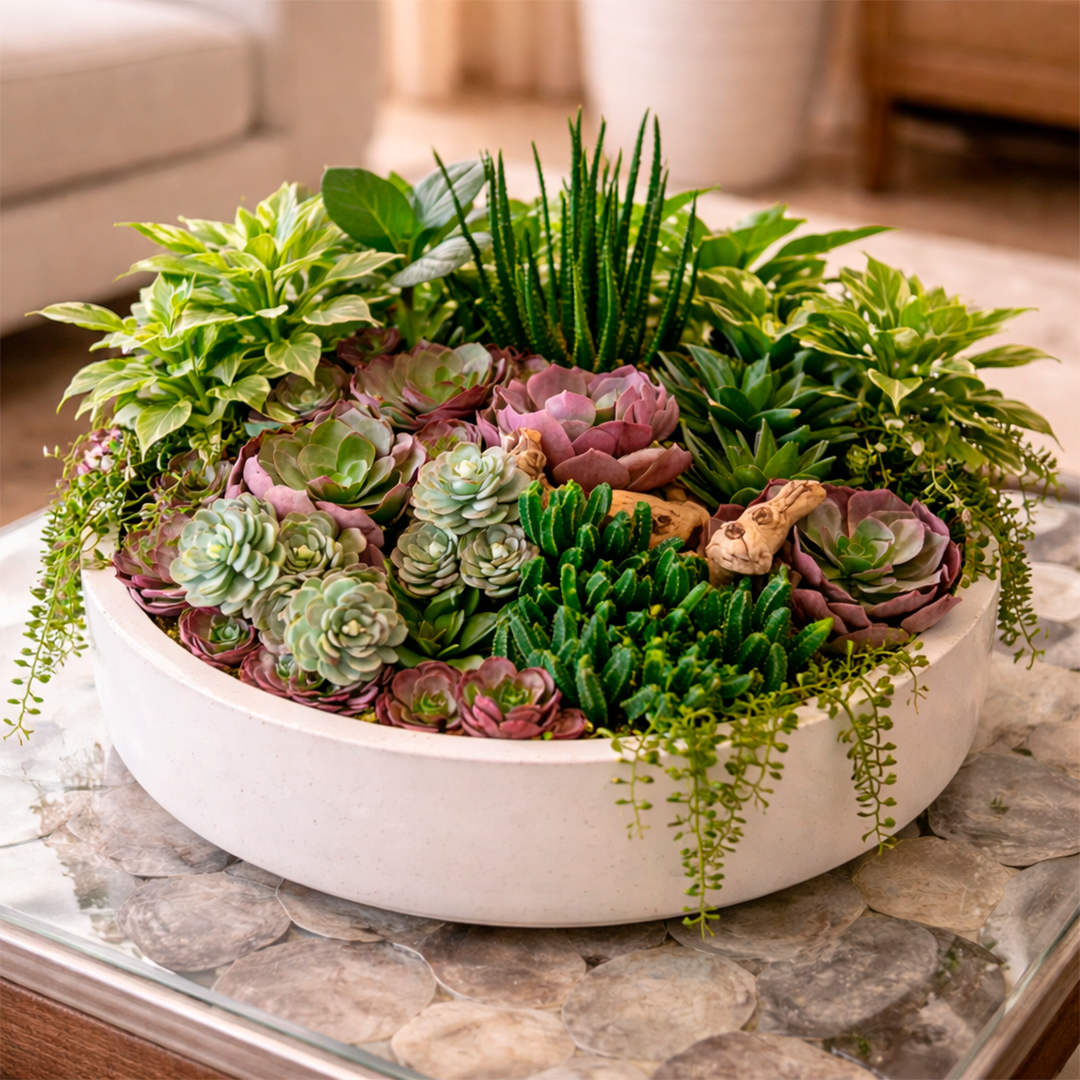 Seleccionamos plantas artificiales premium que transforman los espacios con elegancia, calidez y belleza atemporal — sin mantenimiento ni esfuerzo.